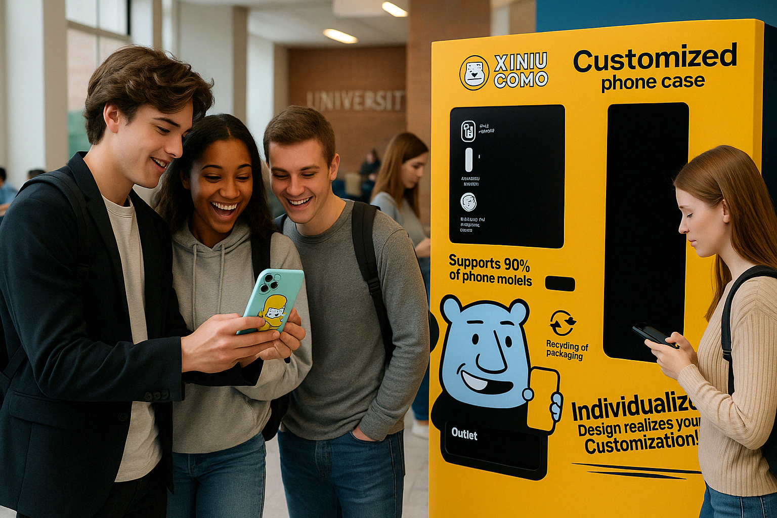 Imagine this: you’re wandering through a student centre between classes, a coffee in hand, when something catches your eye—a sleek kiosk glowing with bright images and an invitation to “Design Your Own Phone Case.” Three minutes later, you’re walking away with a case that you made yourself, complete with your favorite photo or AI-generated artwork. That’s the magic of the customizable phone case vending machine—let’s call it the CaseCraft kiosk—and it might be exactly the kind of little surprise your space didn’t know it needed.